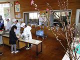 3月3日の雛祭りを前にして、今日の給食が「ひなまつりこんだて」でした。「セルフてまきずし(のり・ツナ・きゅうり・チーズ・たまご焼き)・すめし・ゆばいりよしのじる・ひなあられ・牛乳」でした。手巻のりの袋には、「とちまるくん」や「さのまるくん」等のキャラクターが描かれていました。桃の花も咲き出しました。