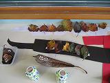 1・2年生は、学習発表会に向けて、生活科や音楽の発表の準備や練習をしています。ドンクリや落ち葉等を上手に使って、様々な物を作った作品が教室のロッカーの上に置いてありました。自分たちでアイディアを出し合って作っているそうです。みんな素敵ですが、中でも、「スイミー」を落ち葉で作った作品が素敵でした。どんな発表になるか楽しみです。
