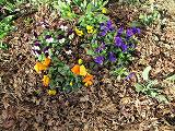 ボランティアの方が毎年、木々の落ち葉をバンジーの周りに掛けてくださっています。でも、今年は暖かかったので、花壇のパンジーの周りに、様々な植物が芽を出し、花まで咲いています。