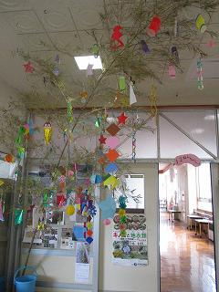 今日の給食は、「たなばた献立」でした。7日は日曜日なので、一足早い七夕です。学校でも昇降口に全校生の願いが込められた短冊が飾られています。