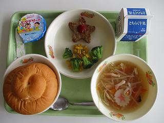 メニューは、「牛乳・バターロール・星のハンバーグケチャップかけ・ブロッコリー・たなばた汁・たなばたゼリー」でした。