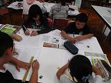 今日の3・4校時に、3~6年生が「しもつけ新聞塾」を受講しました。講師の先生方には、新聞の構成や新聞作りのポイントを教えていただきました。みんな真剣に取り組んでいました。特に、昔話の桃太郎を題材に、「5W1Hを探そう!」という活動は楽しくできました。それをもとに自分が記者になったつもりで記事を書きました。また、2018年3月5日に掲載された「上南摩小植物図鑑」の記事の見出しを考える活動は、自分たちの学校が題材だったので、大変身近に感じました。最後に取り組んだ新聞のレイアウトは、自分で考えて、実際に線を引きました。新聞についての基礎をいろいろ教えていただいたので、今後の社会科新聞づくりなどに活用できると思います。