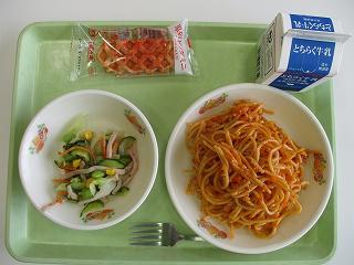 帰ったら、給食でした。今日は、スパゲティミートソースとチーズドッグでした。