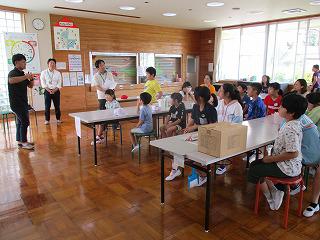 本校では毎年、防災の日に避難訓練を実施しています。2日(月)は、「大雨による特別警報が出て、学校の裏手の山から土石流が発生し、低い階では危険なので、3階へ垂直避難をする」という設定でした。市の危機管理課の2名の担当の方に避難の様子を見ていただき、ご助言をいただきました。また、避難後、ランチルームへ移動して、土砂災害についての話を聞きました。子供たちは熱心に聞いて、質問をしていました。