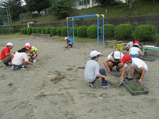今日の昼休み・清掃の時間は、グリーンタイムとして除草活動を行いました。先日のクリーンデーで、きれいになりましたが、またすぐに小さな草が生えてきています。自分たちが競技するグラウンドの中の草をむしりました。その後は昼休みでしたが、一輪車の練習や上南摩音頭の太鼓の練習などに取り組んでいました。