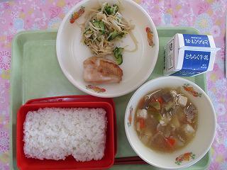 献立(牛乳・ごはん・とりの香味やき・キムチ和え・とんじる)