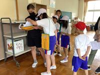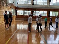 5・6年生は、体育館で体育を行っていました。ボールのよりよい投げ方について、児童と担任で話していました。「腕だけで投げない」「体をひねって回転する力を使う」など、 ボール投げのコツを確認していました。大学まで野球をやっていた担任の実技を、児童は頷きながら見入っていました。