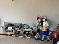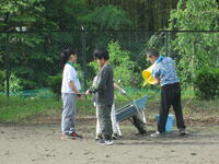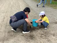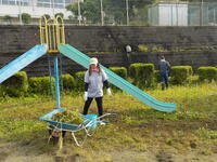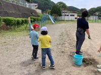 1・2年生は、校庭に生えた雑草を抜いています。抜いた後は根っこを揉んでいたので「なぜ、もんでいるの?」と聞いたところ、「土を落とすためです。」と教えてくれました。校庭がどんどん綺麗になっていきました。