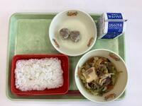 今日の給食は、ジャージャン豆腐、シュウマイ、ご飯です。ジャージャン豆腐は中国の四川料理の一つで、漢字で書くと「家・常・豆腐」。豆腐を素揚げしたものを、家にある野菜や肉で炒めて作る栄養満点な料理です(共同調理場資料より抜粋)。白いご飯にとてもよく合いました。