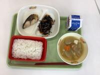 今日の給食は、あじの塩焼き、磯煮、豚汁の和食メニューです。今日は1年給食試食会を行いました。1年生の保護者の皆様が来校し、1年生と一緒に給食を食べました。共同調理場の栄養士さんも来校し、一緒に給食を食べながら食に関するミニ講話をしてくださいました。バランスよく、そして規則正しく食べる食習慣の大切さが分かりました。1年生は、お家の方と一緒の給食がとても嬉しそうでした。