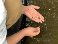 学習室には、生まれたばかりのメダカが元気に泳いでいます。5年理科の学習でメダカの観察があり、下の写真の容器には、10匹ほどの生まれたてのメダカがいます。俊敏に泳ぐ赤ちゃんメダカを眺めていると、生物誕生の不思議や、1匹の命と人間1人の命についてなど、様々なことに思いが膨らんでいきます。