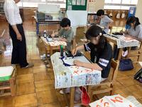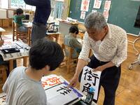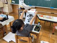 習字支援の先生が来校し、3〜5年生に書道の指導をしていただきました。もう20年以上もご指導いただいており、児童は3年生から基礎基本が身についています。児童は大筆を立てて持ち、とめ、はね、右はらい、左はらいなど形よく書けていました。児童は集中して筆を送り、最後の画を書き切ると「ふぅ、書けた!」と大きく息を吐き、出来上がった作品を嬉しそうに眺めていました。児童自身が技能の向上を確信した時、大きな充実感や達成感を味わっていることでしょう。見ているこちらにも、喜びが伝わってきます。先生、いつもご指導ありがとうございます。