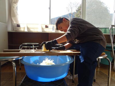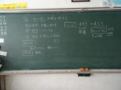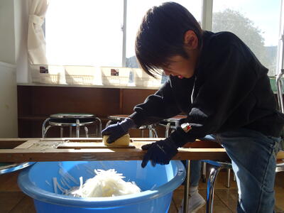 2年生の生活科で「切り干し大根」を作りました。「切り干し大根」の料理ではなく、そのものづくりです。