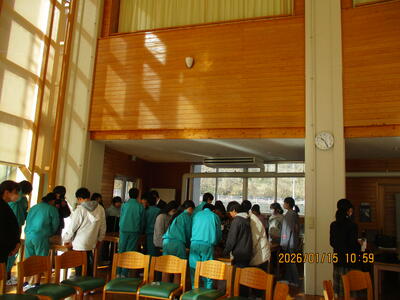 粕尾小学校の6年生も地区内の小学生同様、スクールバスで中学校に集合しました。
