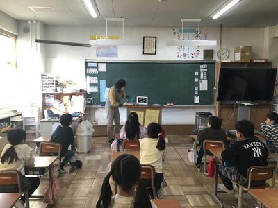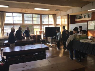 6時間目の5・6年生のお囃子の講師でみえた地域の方が、こちらのお手伝いもしてくださいました。