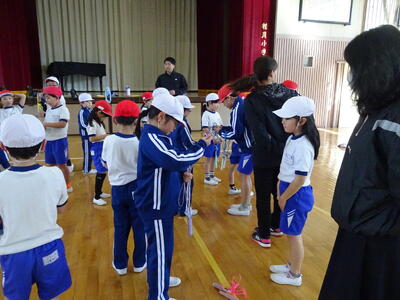 短縄跳びの後、跳び縄を上手にしばれない1年生に対して、上級生がしばってあげる場面があり、とてもすばらしいことだと思いました。