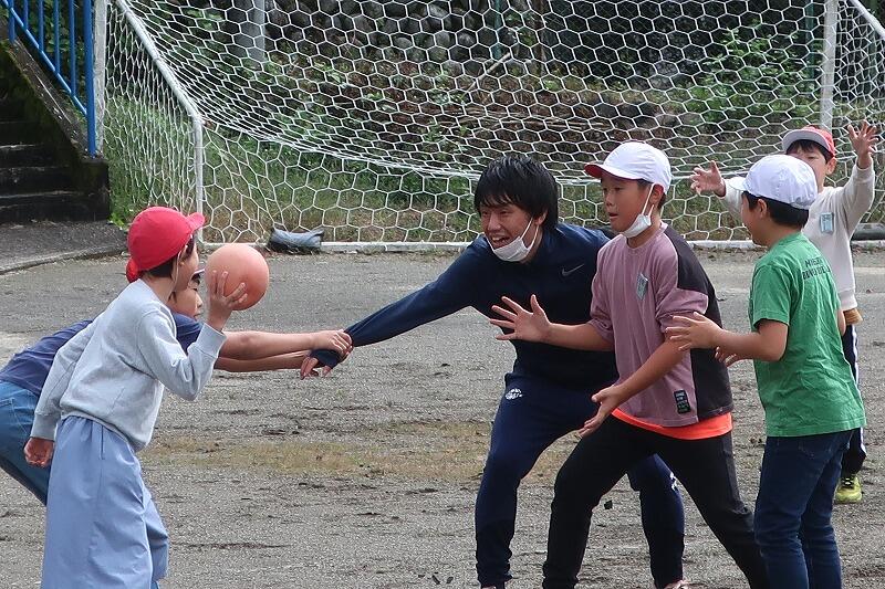 粕尾小出身のボランティアの大学生が、一緒に教えてくれています。