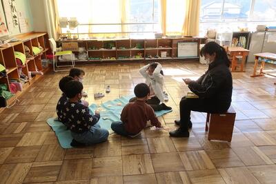 今日の業間は、わかれのことばのれんしゅうでした。1回目なのに、とともよく声がひびいていました。すばらしいですね。