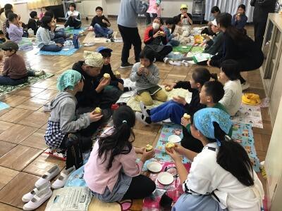 わくわく農園でみんなが育てたさつまいもを使用して、全員で一緒に蒸しパンを作ったので、味はさらに格別でした!さつまいもがとても甘くてさつまいもの素材を生かした蒸しパンになりました。とてもおいしかったです!!!