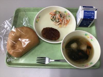 シェルパン キャベツメンチカツ だいこんサラダ えびだんごスープ