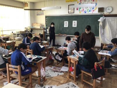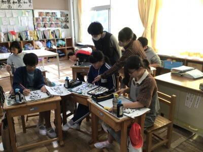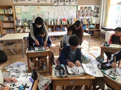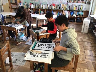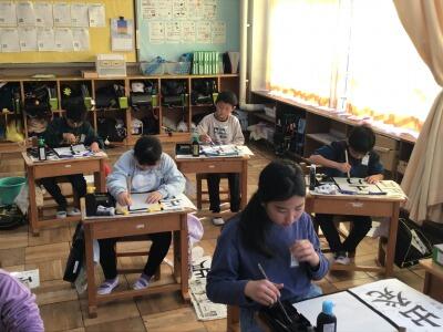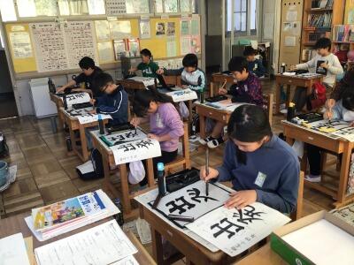 今日は書道ボランティアの先生をゲストティーチャーにお招きして書道の授業を行いました。3校時に3.4年生、4校時に5.6年生で実施しました。筆の使い方どなどをよく教えていただき、みるみるうちに上達しました。これからも定期的にお世話になります。どうぞよろしくお願いいたします。