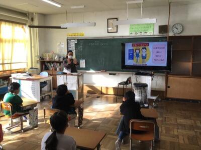 3学期初めてのALTシェラリン先生と3.4年生担任との英語の授業です。みんな元気に英会話の練習をしました!とても楽しい授業でした!!
