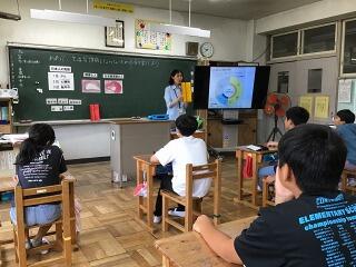 今日は粟野調理場から栄養教諭の松島先生が来て下さり、「生活習慣病にならないための食生活をしよう」という題名で5・6年生の学活の授業をしていただきました。