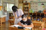間隔をとり、会話もせずに食べなければなりませんが、喜んで食べている子供たちの姿を見て、校長も満面の笑みを浮かべていました。