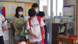始業式は体育館で実施予定でしたが、熱中症の予防のために急遽エアコンのあるランチルームで行いました。