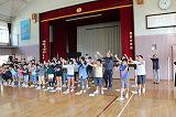 1学期最後の音楽集会は「楽しく合奏唱しよう!」というめあてで、「歌えバンバン」を器楽演奏と合唱を合わせて楽しむ音楽活動でした。山本校長先生より「合わせるものは何かな?」と問われると、子ども達は「リズム!」「心!」「音!」などと答えていました。本日は主任児童委員の方々が学校訪問されていたため、音楽集会の様子を参観していただきました。合わせることを理解することで、合奏唱が華やぎました。体育館一杯に歌声と合奏の音が響いて、とても楽しい一時でした。暑さも吹き飛びました!