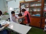 また、授業参観後には、粟野消防署の消防士の皆さんをお招きし、「心肺蘇生法研修会」を実施しました。今回2年ぶりの開催ということで、心肺蘇生法や熱中症の対応について、改めてポイントを押さえることができたと思います。