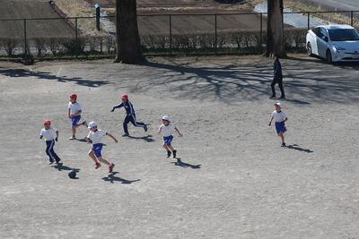 こどもたちから「ピッチャー ‘おおたに‘ バッター ‘むらかみ‘」との声がかかっていました。WBCのブームが粕尾小にもきていますね。