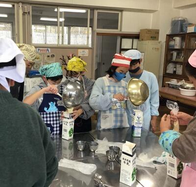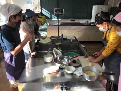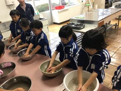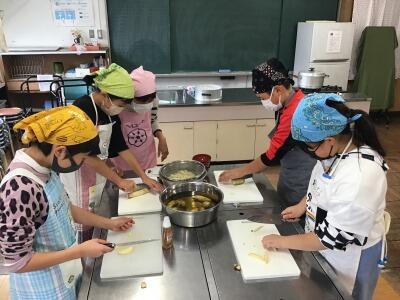 今日は5.6年生が調理実習を行いました。地域の食生活改善推進委員の2名をゲストティーチャーにお招きして共同調理をしました。ゲストティーチャーにいろいろと教えていただき、ジャーマンポテトとミルク餅を作りました。粕尾小学校の地域ボランティアの方々が協力的に活動してくださっているので、学校、家庭、地域で子どもたちの成長を見守っています。本日はありがとうございました。