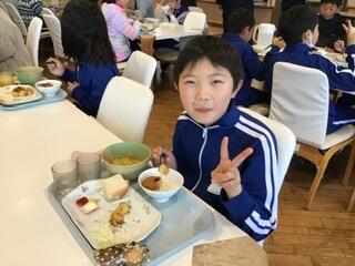 お二人の先生といただきましょう!児童は縦割り班のグループで食べました!