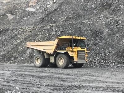 ちなみにこのトラックには約50トンの砕石を乗せられます。公道は大きすぎて走れません。この内部で組み立てて内部だけで運んでいます。