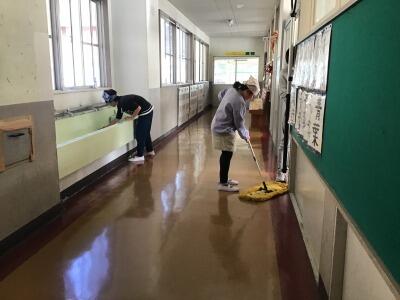 先週は清掃強調週間で、教室等を水拭きして金曜日の6校時にワックスがけを行いました。教室をきれいにして新年を迎えます。みんなで協力してワックスがけができました。お疲れ様でした。