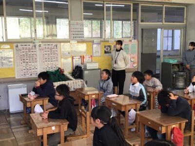 発表では、学習や縄跳び、スケート教室に向けて自分の苦手なことを頑張りたいという発表がありました。また、6年生は、粕尾小学校で学んだ、協力することの大切さや、責任感を持つこと、人間関係作りを大切にして3学期も生活し、中学校に入学したいと発表しました。3人の発表はとても素晴らしく、聞いている児童も真剣に聞いていました。