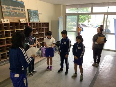 あいにくの雨ですが、5年生のみんなは元気に粕尾小を出発しました。