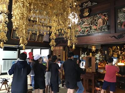 もう高学年なので、タブレットを持参して写真撮影。本堂の様子を取材しています。どんな学習のまとめになるでしょうか。