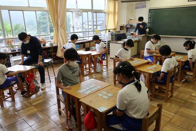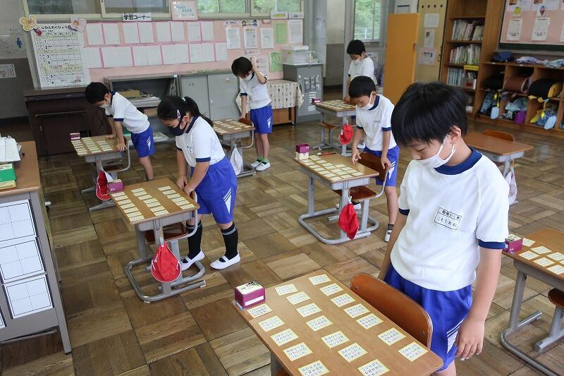 5・6年生は五色百人一首に取り組んでいました。ずいぶん慣れてきて、上の句を少し読み上げただけで「ハイ!」という声があちこちで聞こえるようになってきました。