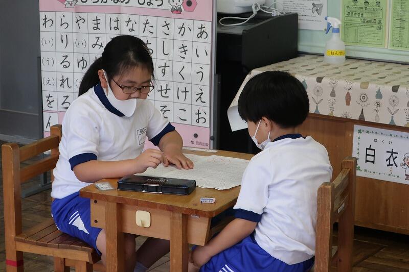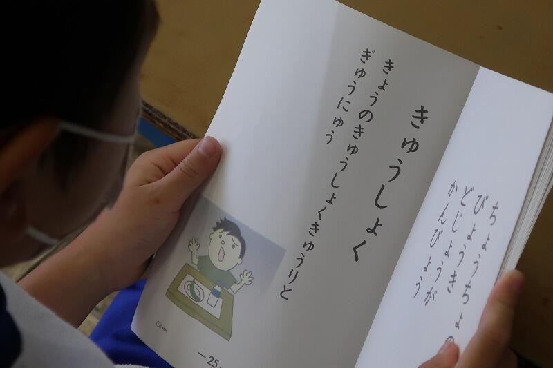 1年生は「びゃ、びゅ、びょ」「ぴゃ、ぴゅ、ぴょ」などの拗音(ようおん)にチャレンジ。