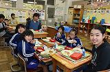 2月25日(月)、27日(水)、28日(木)、3月1日(金)の4日間に卒業おめでとう給食を実施しました。卒業する7名の6年生が、1・2年、3・4年、5年の各教室と校長室で給食を食べ、最後の思い出づくりをしました。下級生や先生と普段とは違った雰囲気の中、楽しく会話しながら給食を食べることができました。校長室ではやや緊張気味に入室しましたが、校長先生と牛乳で乾杯すると緊張も吹き飛び、笑顔があふれました。6年生にとっては良い思い出となりました。