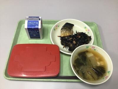 ごはん さばのしおやき ごもくに じゃがいものみそしる