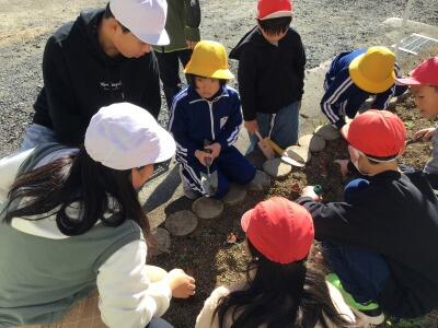 業間の時間に縦割り班でチューリップを植えました。きれいに咲くといいですね。
