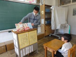 今日は、教職員による読み聞かせでした。教職員もそれぞれが児童に聞かせたい内容の絵本を選んで読み聞かせをしました。