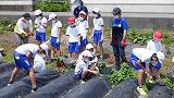 今日は業間の時間に学校農園にサツマイモの苗を植えました。縦割り班で協力して、自分の担当の畝に心を込めて植えました。秋にたくさんのサツマイモができるよう、今後世話をしていきたと思います。