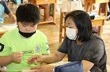 3・4校時に家庭科で裁縫をしました。前回は玉結びを学習しましたが、今回は波縫いを学習しました。家庭科担当の斉藤先生に縫い方を教えていただき、みんな一生懸命縫いました。途中、小髙教頭先生にもお手伝いいただき、個に応じた支援をしていただきました。5・6年生11名全員、きれいに仕上げることができました。