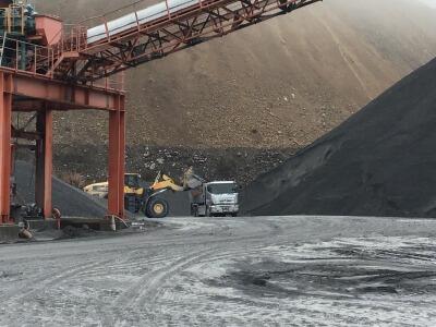 ちなみにこのトラックには約50トンの砕石を乗せられます。公道は大きすぎて走れません。この内部で組み立てて内部だけで運んでいます。