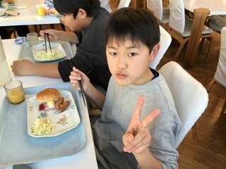 朝ごはんです!やっと笑顔を見られました。笑