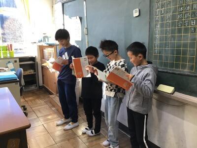 今日は、3年生から、ぜひみんなに読み聞かせをしたいという提案があり、4.5年生と6年生に読み聞かせをしてくれました。練習もしっかり行い、役になり切って読み聞かせを行いました。